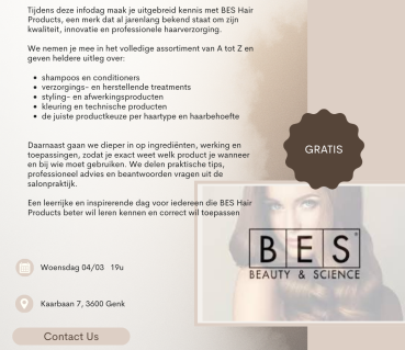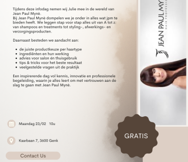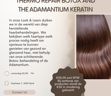 € 60,50 (incl. BTW) look & learn Thermo repair botox and the adamantium keratin 06/05/26 19:00 - 22:00 Meer informatie